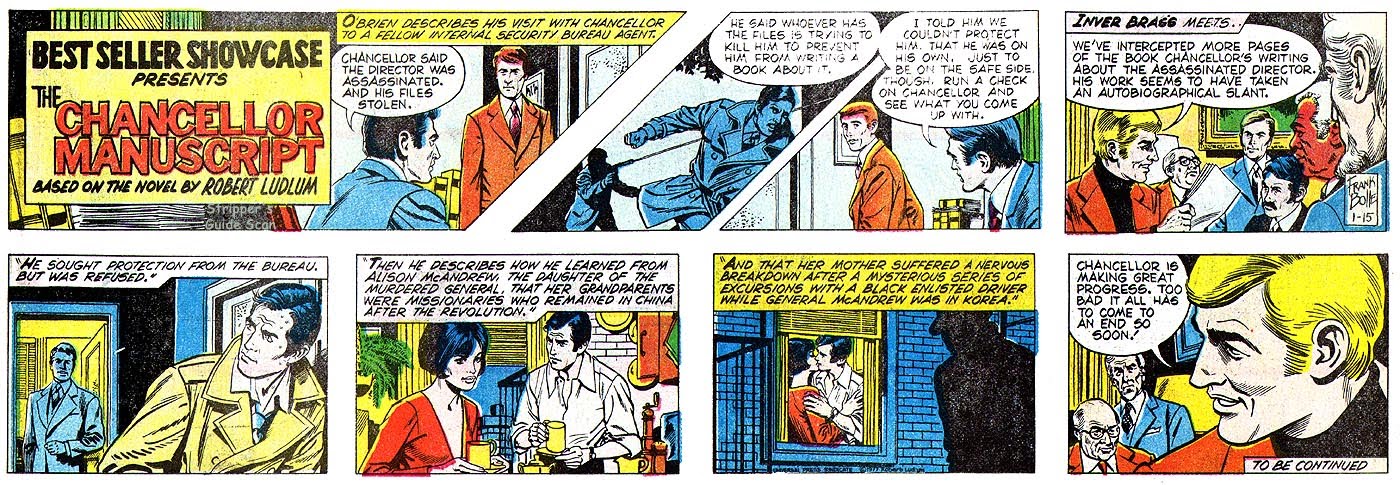 The Chancellor Manuscript by Robert Ludlum, art by Frank Bolle, 12/5/77 - 2/12/78 (10 weeks)