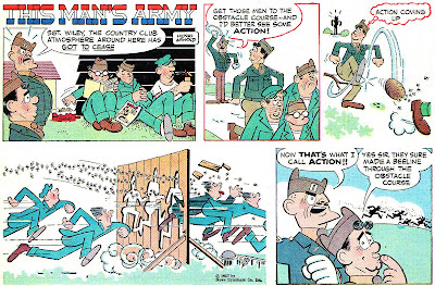 In observance of Memorial Day, let's take a look at a military-themed obscurity. This Man's Army was one of those filler Sunday features that the New York Daily News used in their comic section. I know of it running on at least seven occasions, five times in 1957 and twice in 1959, but it probably ran more than that.