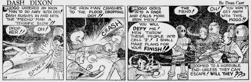 Less than two weeks later, Dash Dixon was the third strip, also syndicated by Lincoln, to be copyrighted. The following entry is from the Catalog of Copyright Entries, Part 1, Group 2, Pamphlets, etc., 1936 New Series, Volume 33, Number 1: