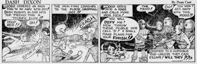 Since Antonette's name was on Van Tine's Bozo and the Baron, two pseudonyms were used for his strips from Lincoln Features, which was operated by H.T. Elmo. It's not known who came up with the pseudonyms "Bob Dart" and "Dean Carr"; my guess would be Elmo since he was the owner. Another artist, Jack Kirby, drew Facts You Never Knew for Elmo's syndicate and signed the strip as "Bob Dart".
