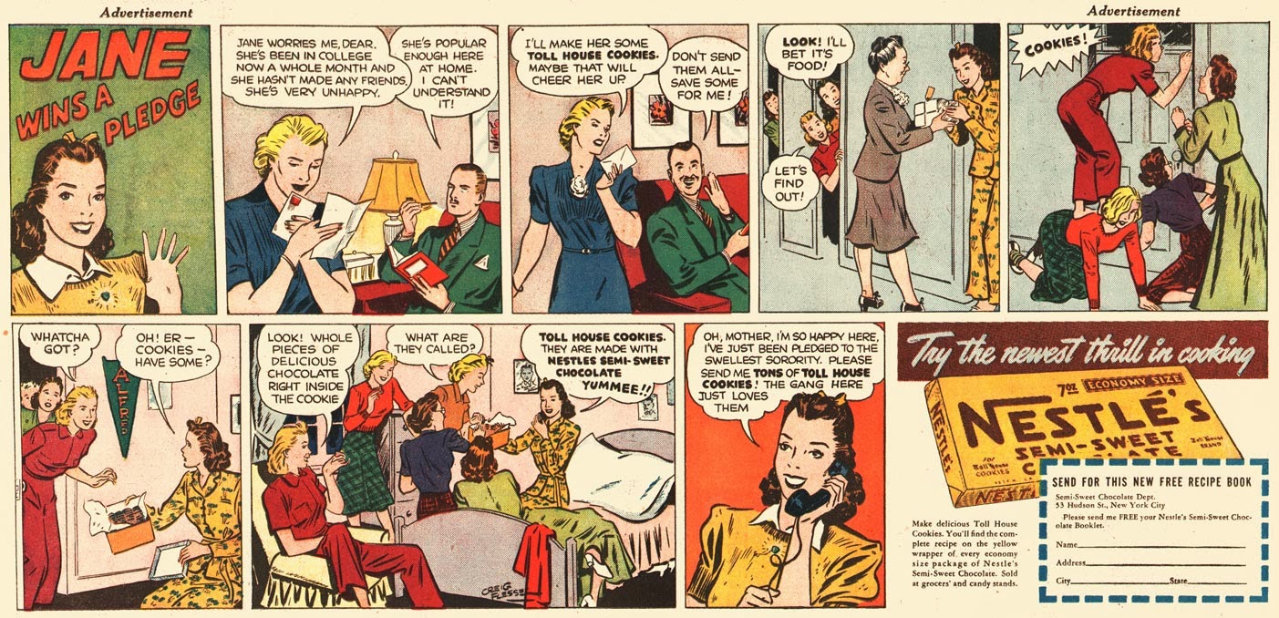 The Alfred Sun, October 17, 1940, explained the story behind the Nestle’s advertisement (below) that ran in the Sunday comics section October 13, 1940.