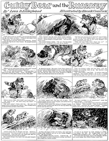 Originally the Cubby Bear series, which was written by Lena B. Ellingwood, seems to have been in the form of text story, accompanied by a cartoon by Harrison Cady. Later the feature changed into a comic strip. I don't know when that was, but I have a handful of examples here from 1938-39, and by then the art was by the very good artist Enos B. Comstock.