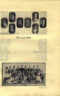 Hogarth was interviewed in the Comics Journal, #166, February 1994, and at age 15, he produced artwork for Associate Editors’ Syndicate’s panels The Sportiest Act I Ever Saw and Famous Churches of the World. He attended Tuley High School although it’s not clear when he graduated. Chicago Public Schools’ CPSAlumni.org website (currently closed) said he was in the class of 1929. The Log 1929, which is available at Memory Lane’s Classmates.com section, does not list or mention Spinoza Bernard Ginsburg. He was the art editor of the 1928 yearbook but it has no picture of him. He signed his name “Hog III” or “Hogarth”; below are pages with his art and the yearbook staff credits.