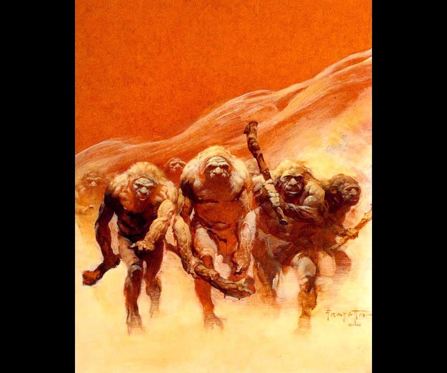 Hmm. Did Frank Frazetta remember the final panel of this Connie Sunday from his childhood when painting "Neanderthals"? The shambling men, and the extreme shadows on the faces ...