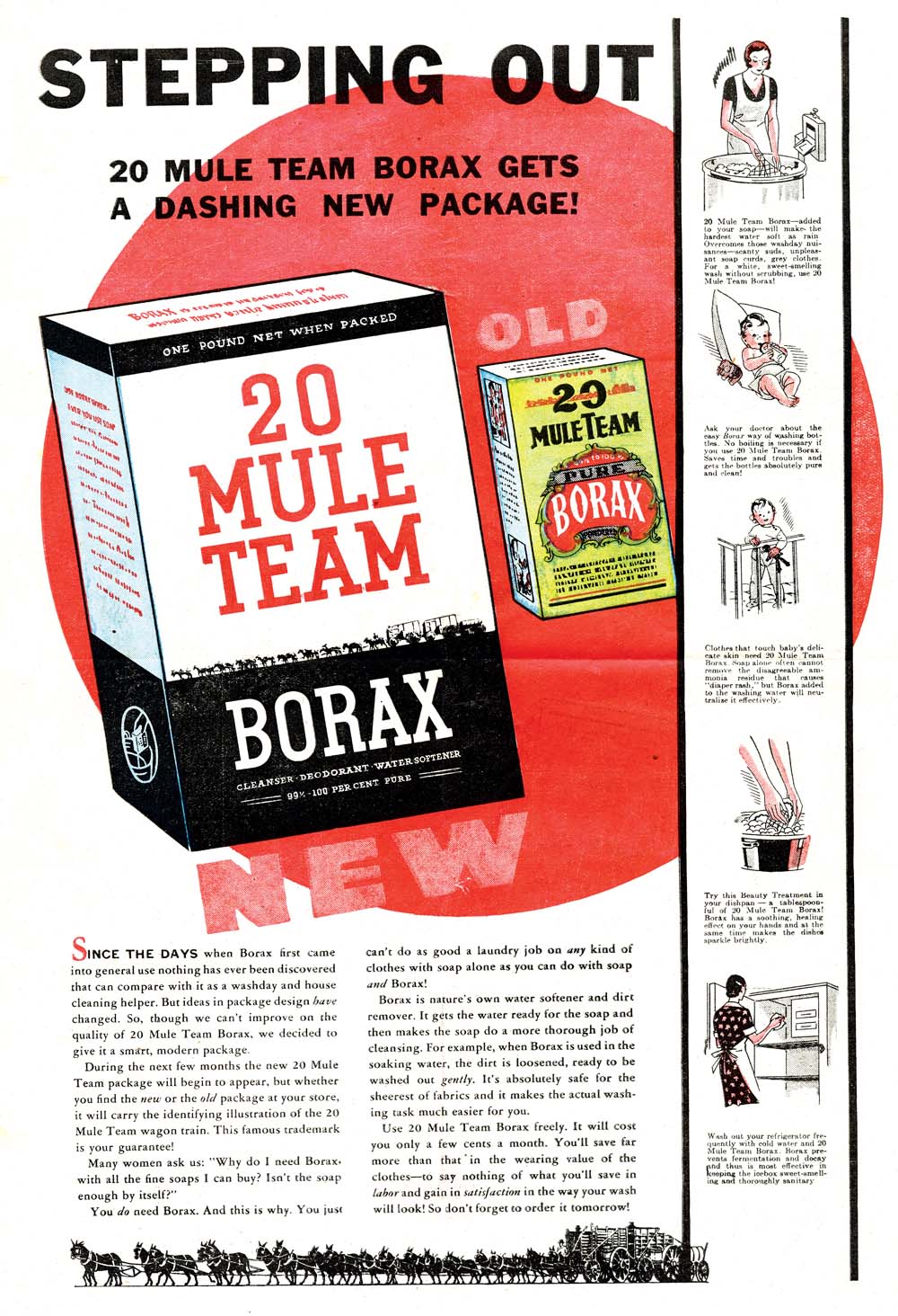 Here's an interesting promotional item from the radio show Death Valley Days, which was sponsored by 20 Mule Team Borax. Although there is no copyright evident on the 4-page 'comic section', it almost certainly dates from 1938. The new box for20 Mule Team is heralded on page four of the promo, and that gives me a way to date it. Checking on period advertising of the product, I find the old box in 1937 ads, and the new one in 1938 ads.