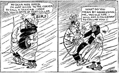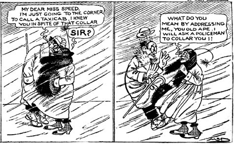 When I confided to him that I had two quite successful syndicate features in hand and could not, it was evident, drop them for the insignificant, even paltry sum of a hundred dollars, he snapped out: "Well, I'm taking chances on you! You've been identified with comic stuff for several years and your effectiveness as a cartoonist may be impaired." He was evidently quite piqued, and in spite of Bob's nervous signals to placate him, I retorted, very truthfully: "I'm the one who is taking chances. You have never made a success yet of any newspaper you ever tackled."