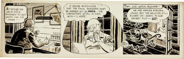There's an infamous story of how later Batman artist Lew Sayre Schwartz was originally hired to produce THE SAINT but Schwartz and Leslie Charteris mixed like oil and water. When Leslie criticized Lew's ability to draw hands, Lew quit. When I interviewed him back in 2004, he showed me the month's worth of strips he had drawn, but Leslie opted for a different story for syndication and Mike Roy was hired. Scwartz's work was sold as a set and will hopefully see print some day.