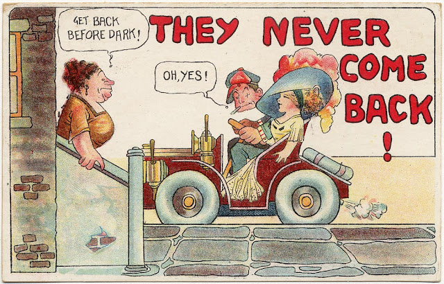 Here's a Carmichael series we haven't seen yet. "They Never Come Back" was issued by Taylor Pratt & Company as Series 728, probably around 1913-14. For some reason Carmichael chose not to sign any of the cards in this later series -- perhaps because he was starting to think of himself as a success as a newspaper artist?
