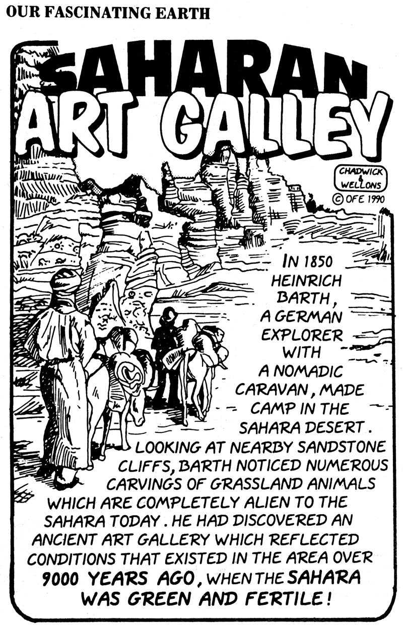 With Seff, Chadwick and Wellons at the helm, Our Fascinating Earth proceeded smoothly year after year with a small client list until 2005. A few reprint books were published in the 1990s, and a website for the feature seemed to promise live-action educational videos and other products to come. Those plans probably dissolved in 2005 when Seff's wife Nancy passed away. She had shared credit on the reprint books, but not on the panels themselves. Philip Seff died in 2016 at age 92, having succeeded admirably in one of the toughest gigs around -- successfully self-syndicating a newspaper feature.