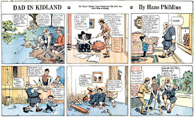 Dad in Kidland debuted in the Sunday section of the New York World on May 7 1911*, and was initially credited to Hans Phildius. Mr. Phildius only signed the strip for the first five installments, and was then replaced by Ed Carey** (see bottom two samples).