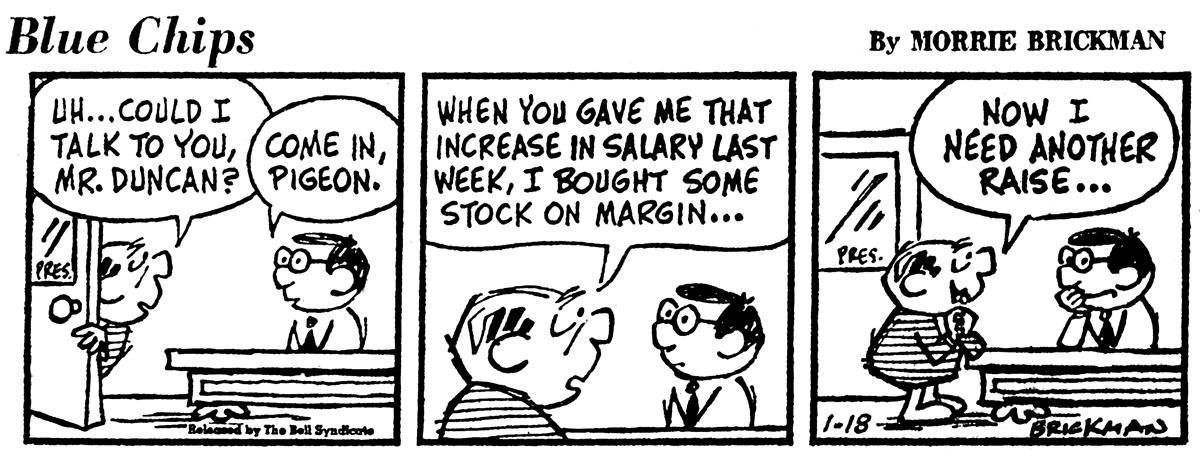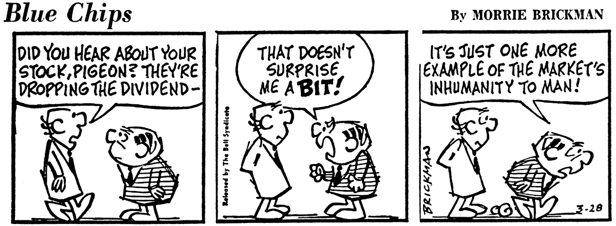 Blue Chips may have further limited its chances of success by treating readers like they were savvy investors. Gags that depend on an understanding of dividends, stock splits and margin trading no doubt made for fun reading for experts, but the typical newspaper reader would have been mystified.