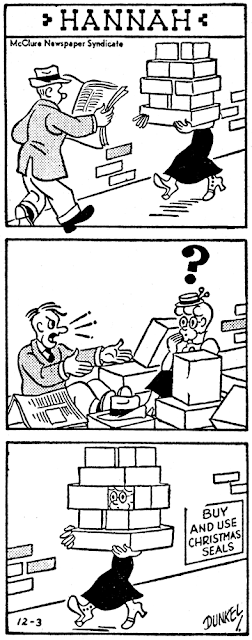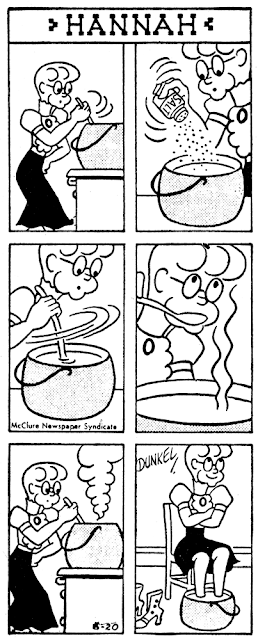 The amazingly prolific Courtney Dunkel had newspaper series published by a bunch of different syndicates, with Hannah his only entry from the McClure Syndicate. It was also one of only two in which he used a continuing character, this time a sweet old lady, and billed as a pantomime.